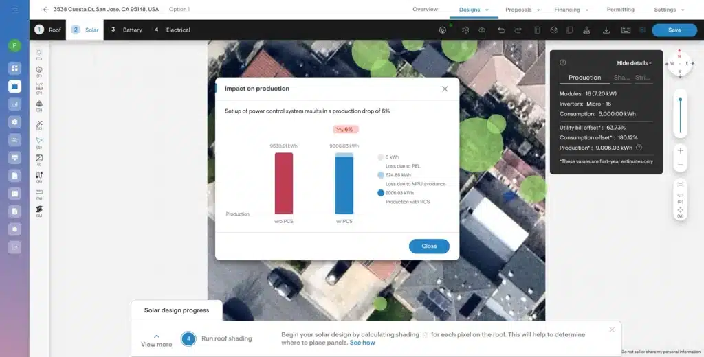 Solargraf’s PCS functionality will help you set up PCS easily and observe its effects on production and financial calculations.