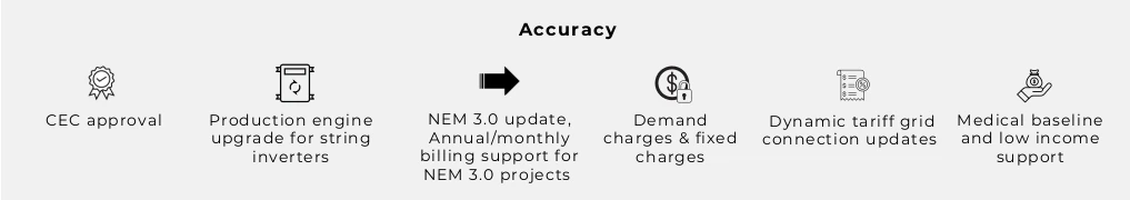 - NEM 3.0 update: Solargraf supports the NEM 3.0 utility calculations for splitting and offset of generation/delivery export credits. Under the updated framework, the generation and delivery components of import charges can only be offset by their respective export credit components.