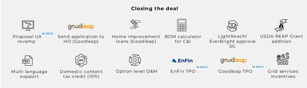 Streamline your sales process with Solargraf’s new features that makes the sale easy with incentives including VPP, domestic content and flexible financing options including leases and PPA in a new customizable proposal template.