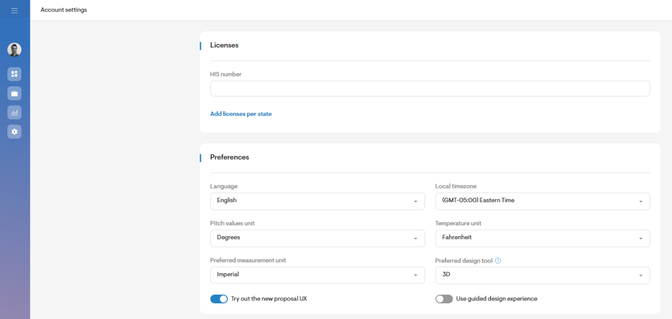 (Only for users whose Solargraf account was created before March 2026) You can enable the Guided design experience in your User Profile → Preferences, using the toggle labeled “Use guided design experience”.