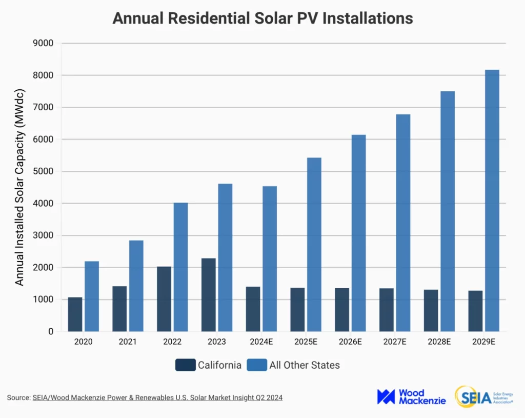About one year after NEM 3.0’s approval, the California solar and storage industry had lost an estimated 17,000 jobs, despite a nationwide increase in PV capacity. So, while annual residential solar installations in the U.S. are expected to continue rising through the end of the decade, the ongoing availability of net metering policies is critical to maintaining current growth projections.